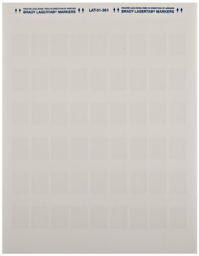 Brady B-361B clear polyester is used for wire and cable identification.Used in a self-laminating format which has a white printable or write-on zone and a translucent overlaminating area.RoHS compliant.Blank, printable polyester labels for laser printers. Brady B-361 is RoHS compliant to 2005/618/EC MCV amendment to RoHS Directive 2002/95/EC. Special Features: Brady B-361B is used in a self-laminating format which has a white printable or write-on zone and a translucent overlaminating area. Brady B-361B has good print smudge resistance, solvent resistance, and elevated temperature performance.Brady LAT-51-361-1 0.75" Width x 1.5" Height, B-361B Self-Laminating Polyester, Matte Finish White/Translucent Laser Printable Features.
